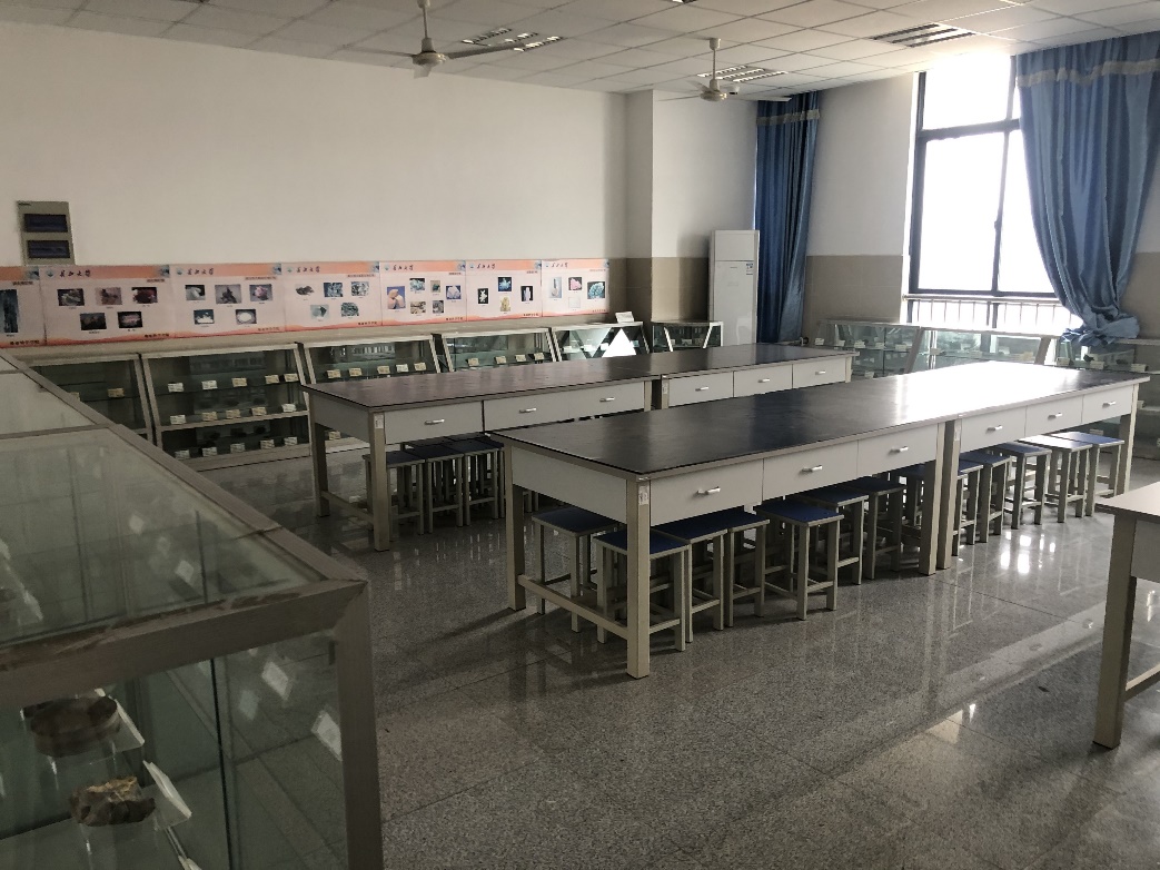 岩石矿物实验室(图36)位于武汉校区综合实验大楼A405,面积约75m2。该实验室陈列了常见造岩矿物、沉积岩、岩浆岩、变质岩三大类岩石共计300余种典型标本。这些标本类型丰富、保存精美。可以面向社会开展以地球的物质组成为题的科普教育活动。