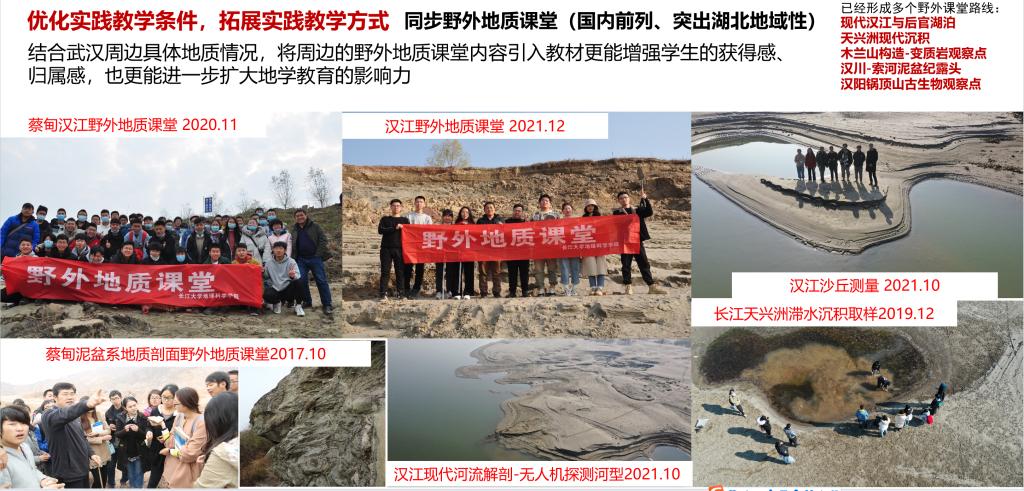 (1)已建立4个岩石观察点(图39):以知音湖、锅顶山为考察对象,建立碳酸盐岩观察的实习点;以九真山和汉江江滩为研究对象建立了碎屑岩及其地层发育特征观察的实习点。能满足公众对岩石基本类型及特征的识别,使其学会了解岩石类型。