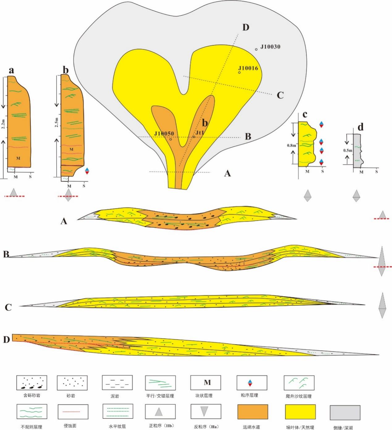 图2 吉木萨尔凹陷芦草沟组异重流沉积模式