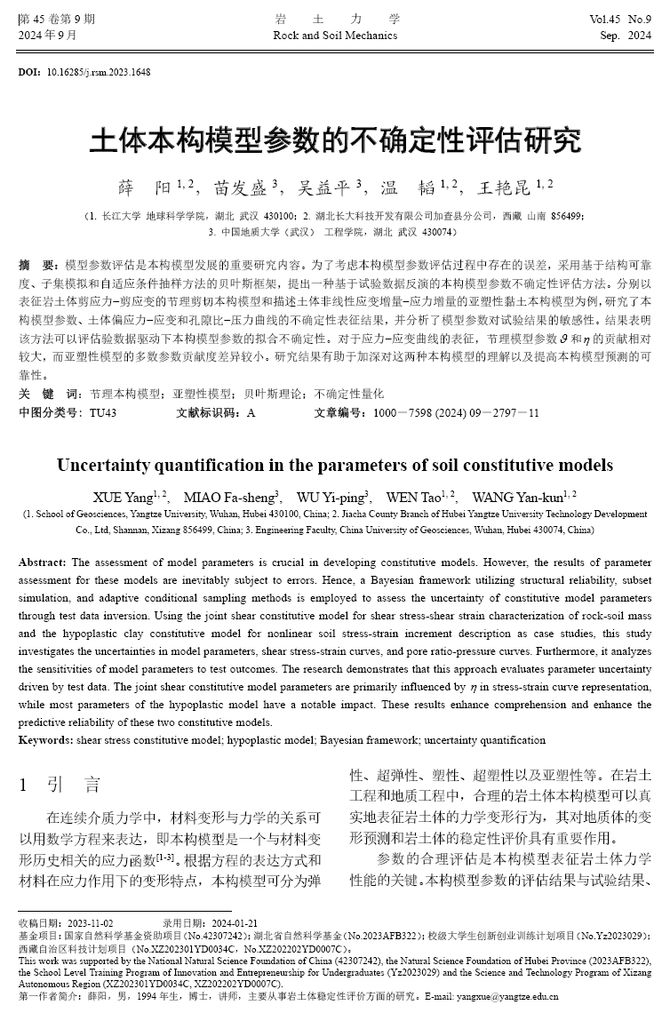 VSport地质系教师薛阳博士以第一作者身份在《岩土力学》上发表论文。《岩土力学》为中国核心、EI收录期刊;2019年,《岩土力学》入选中国科技期刊卓越行动计划梯队期刊;2023年中国岩石力学与工程领域唯一入选ESCI的中文期刊,获得第一个JCR影响因子1.5;JCR分区Q3(信息来源官网)。本项研究得到了国家自然科学基金项目和西藏自治区科技项目的资助。
