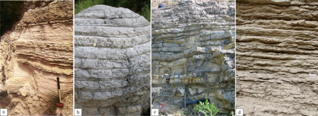 图1等深流沉积特征a-塞浦路斯(Stow et al., 2002; Rebesco et al., 2014);b-富平(李华等,2016);c-平凉(李华等,2016);d-鄂尔多斯盆地西北缘