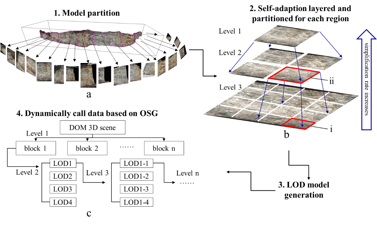 研究结果表明,构建数字露头LOD模型可以实现大规模模型在内存中的动态调度与分级显示;基于三维数字露头模型的裂缝线状和面状结构面特征参数获取方法能够有效应用于大规模数字露头模型的裂缝特征解译。该研究为虚拟露头裂缝解译提供了有力的技术支撑,并促进地质学家对该项技术在特定研究中潜在应用价值的探索,对裂缝型油藏勘探开发具有重要的实际意义。