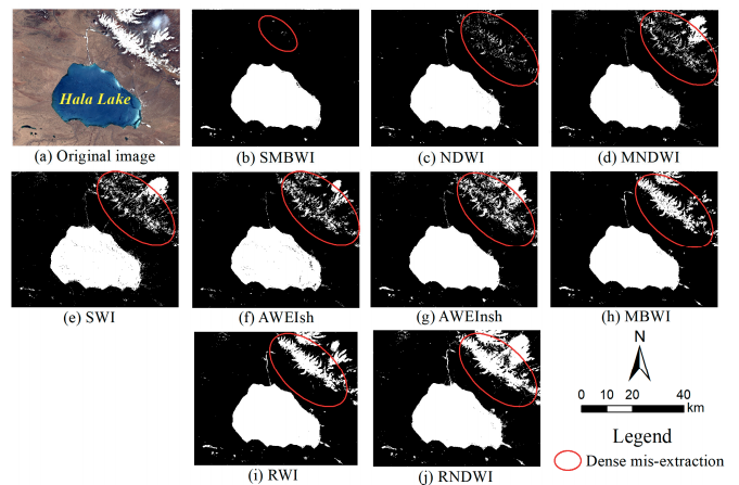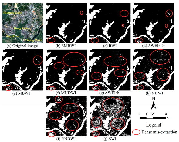本研究提出了一种基于Sentinel-2影像数据提取水体信息的新水体指数SMBWI。经试验测试,新水体指数SMBWI在提取水体时,对城市建筑物及其阴影、耕地、植被、云层及其阴影、高山地形和冰川等典型地物干扰消除效果均优于其它8种常用水体指数,对细小水体的识别和提取也有较好的表现。该水体指数提供了一种简洁、高效的提取水体信息的新工具,有利于相关部门和人员对地表水体分布及其变化进行调查和研究。