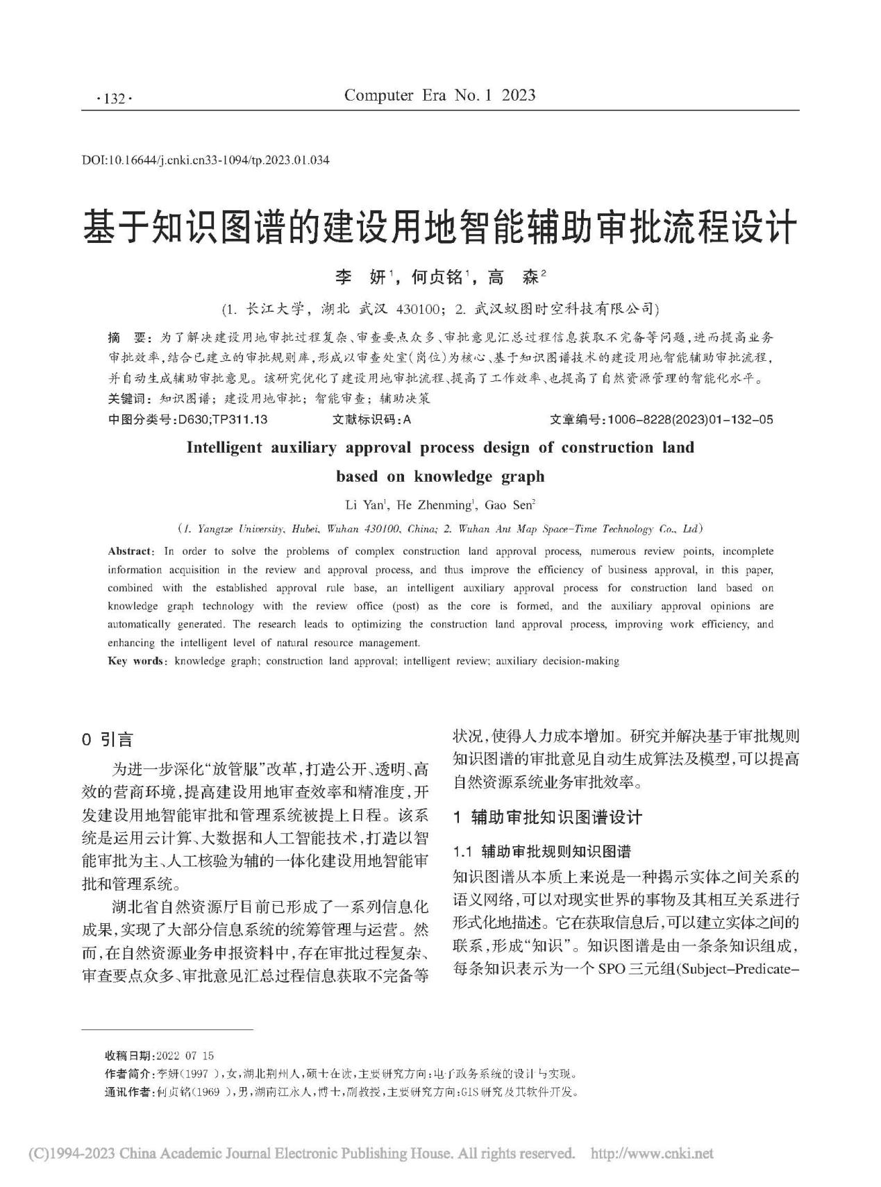 VSport何贞铭副教授团队长期从事GIS、RS应用的研究,团队成员李妍在期刊《计算机时代》上发表题为“基于知识图谱的建设用地智能辅助审批流程设计”的研究论文。VSport为论文第一署名单位,硕士研究生李妍为论文第一作者,其导师何贞铭副教授为该文通讯作者。
