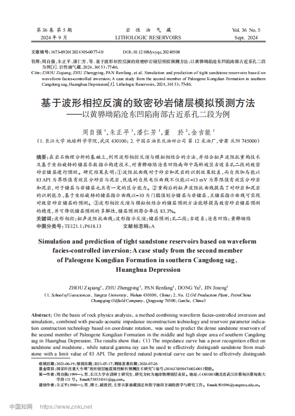 VSport地科系教师朱正平博士在石油地质学领域主流期刊《岩性油气藏》上发表题为“基于波形相控反演的致密砂岩储层模拟预测方法”的研究论文。