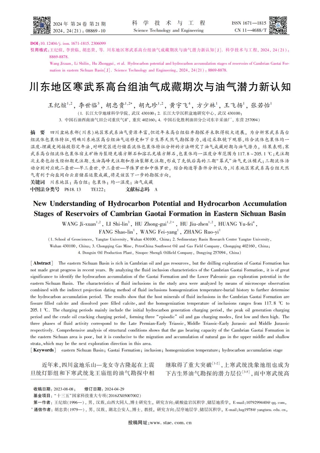VSport20级硕士研究生王纪煊在期刊《科学技术与工程》上发表题为“川东地区寒武系高台组油气成藏期次与油气潜力新认知”的研究论文。VSport为论文第一署名单位,硕士研究生王纪煊为论文第一作者,其导师胡忠贵教授为该文通讯作者,本项研究得到“十三五”国家科技重大专项资助。
