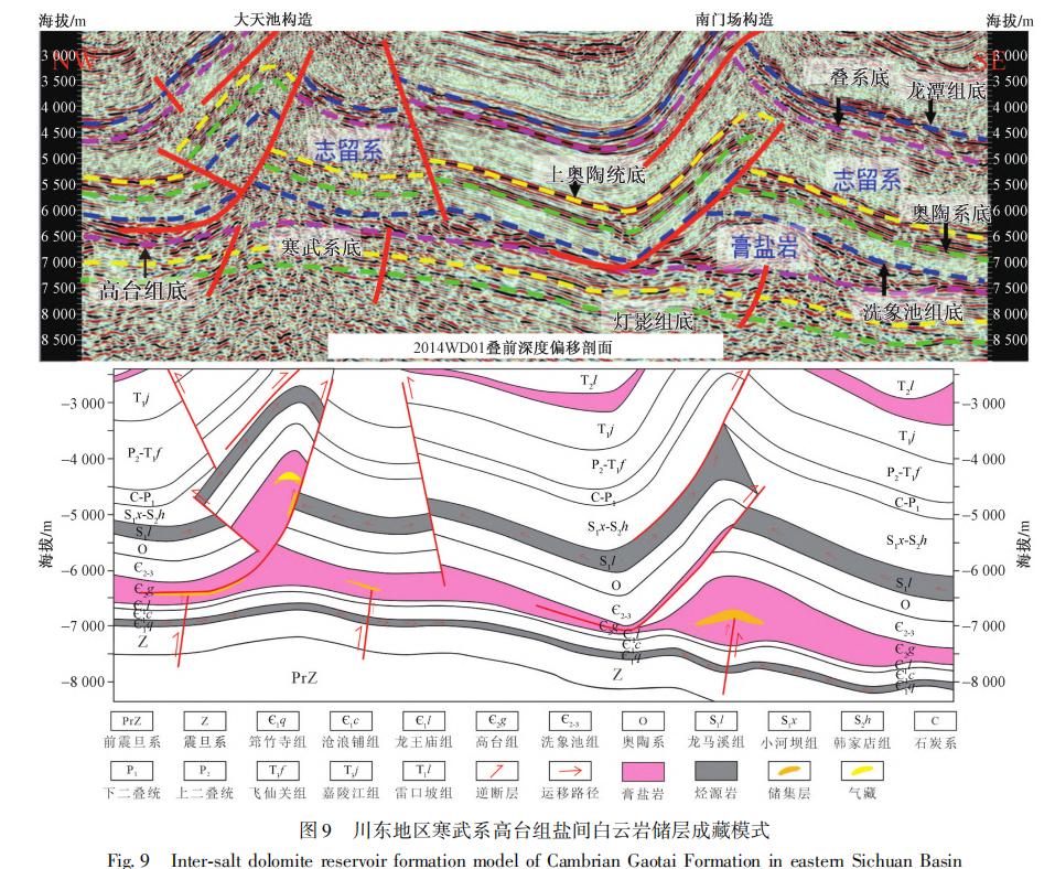 图2 川东地区寒武系高台组盐间白云岩储层成藏模式