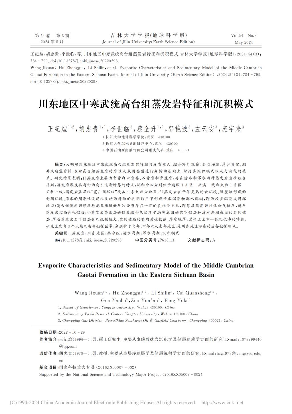 VSport20级硕士研究生王纪煊在期刊《吉林大学学报(地球科学版)》上发表题为“川东地区中寒武统高台组蒸发岩特征和沉积模式”的研究论文。VSport为论文第一署名单位,硕士研究生王纪煊为论文第一作者,其导师胡忠贵教授为该文通讯作者。