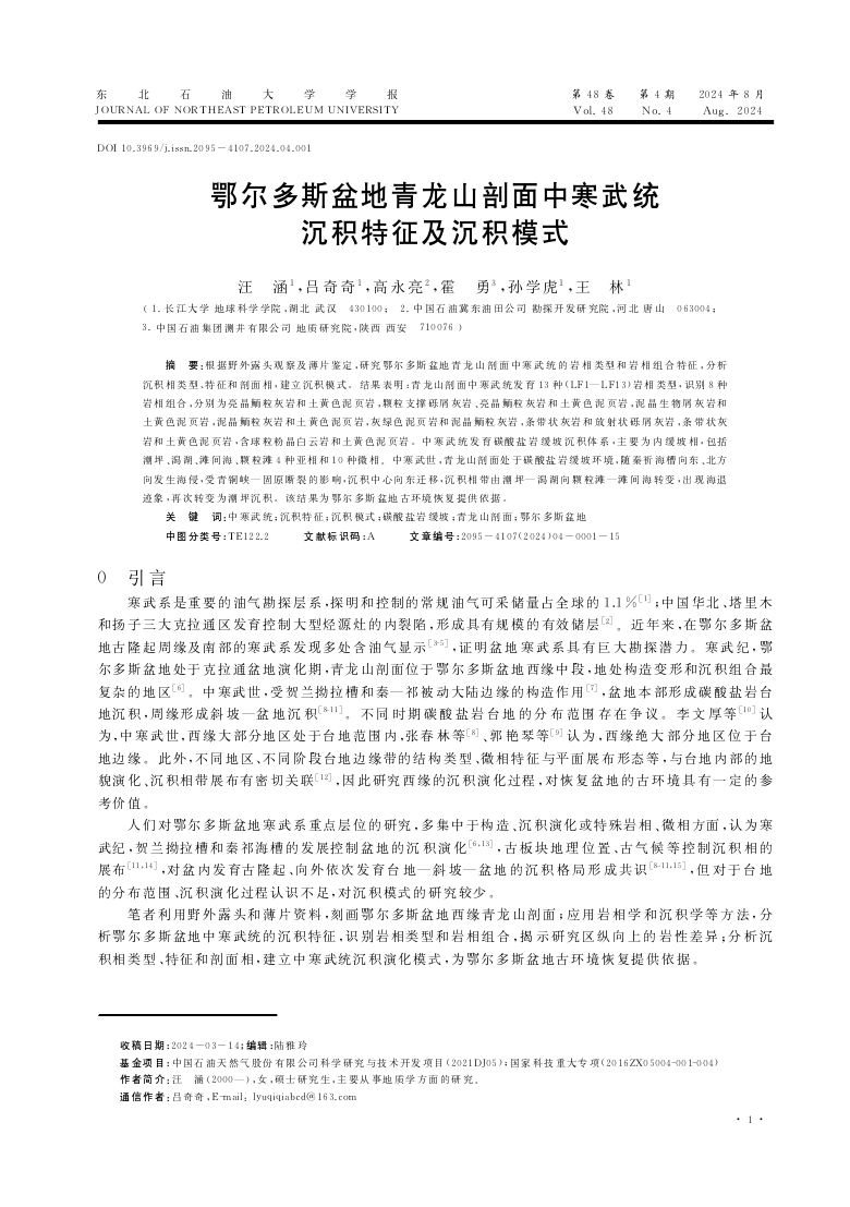 VSport22级硕士研究生汪涵在期刊《东北石油大学学报》上发表题为“鄂尔多斯盆地青龙山剖面中寒武统沉积特征及沉积模式”的研究论文。VSport为论文第一署名单位,硕士研究生汪涵为论文第一作者,其导师吕奇奇副教授为该文通讯作者,本项研究得到中国石油天然气股份有限公司科学研究与技术开发项目和“十三五”国家科技重大专项资助。