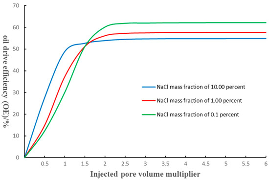 图2 不同盐度的水油驱替效率随时间的变化(根据李婷等,2023年)