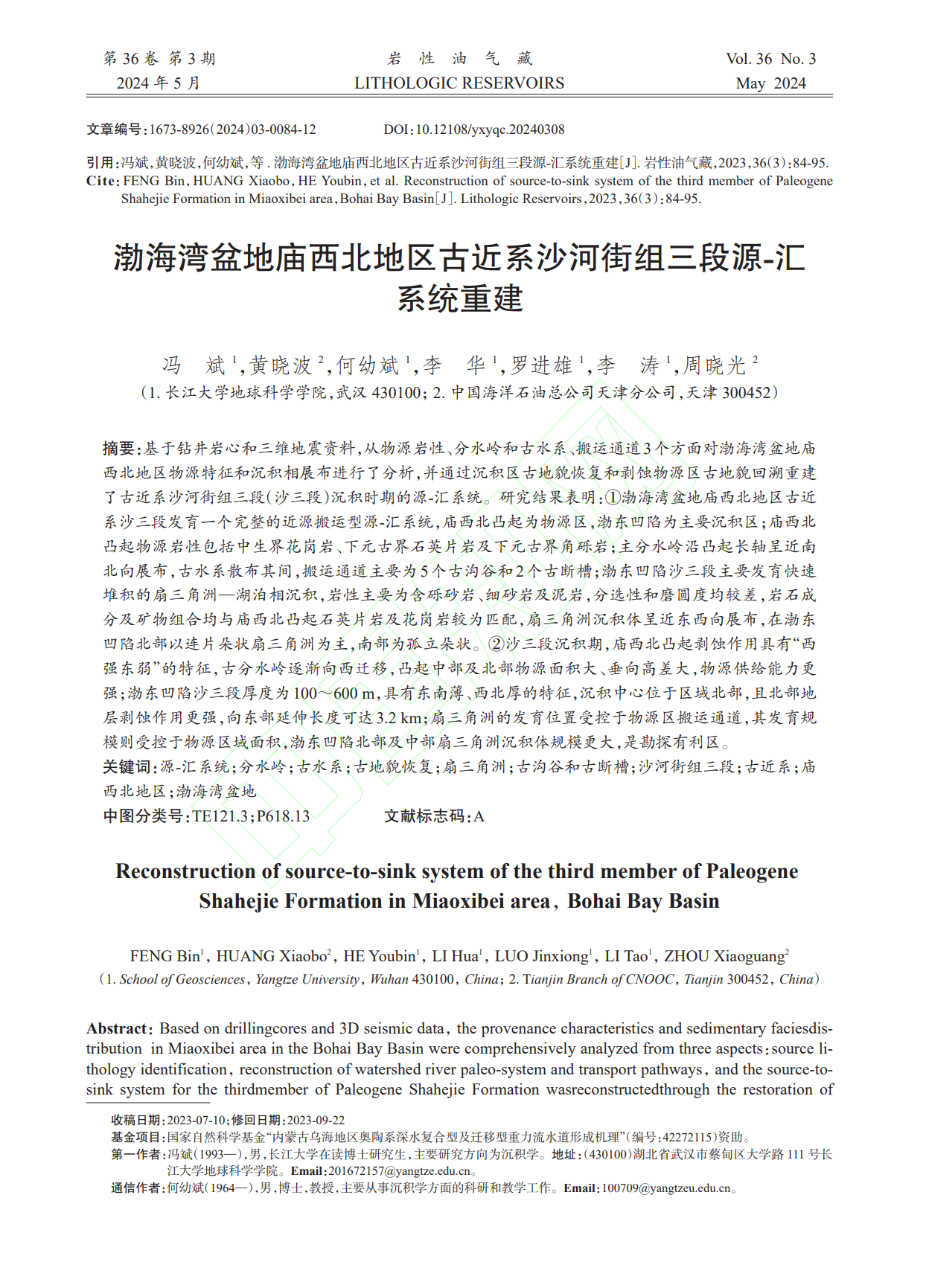VSport何幼斌教授团队长期从事沉积储层相关研究,团队成员冯斌在中文核心期刊《岩性油气藏》上发表题为“渤海湾盆地庙西北地区古近系沙河街组三段源-汇系统重建”的科研论文。VSport为论文第一署名单位,博士研究生冯斌为论文第一作者,其导师何幼斌教授为通讯作者。