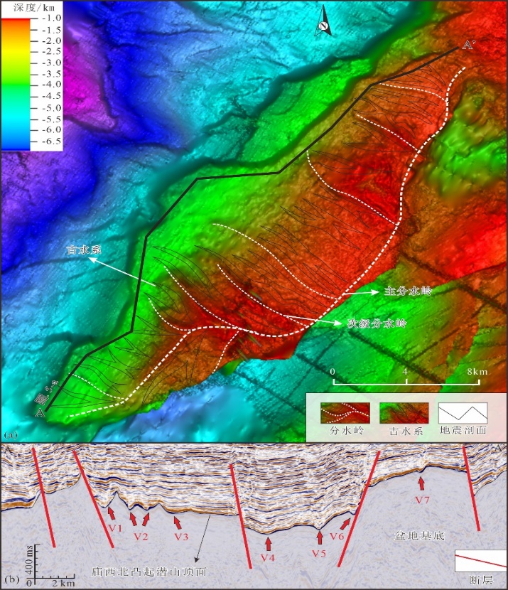 前人在古代陆相盆地“源-汇”系统重建方面已经取得了诸多重要进展,但受限于陆相盆地“源-汇”系统复杂的构造演化和地质背景、古代地质记录的局限性和不可逆性,古“源-汇”系统重建目前更侧重于大尺度或洋陆边缘盆地“源-汇”系统的模式化重建。对于古代陆相盆地“源-汇”系统重建而言,其剥蚀物源区的地貌特征、古分水岭迁移路径、古水系散布规律等要素的重建仍是难题,导致小尺度、高精度的古“源-汇”系统重建尤其具有挑战性。冯斌博士以“源-汇”系统思路和地貌学理论为指导,根据物源周缘沉积充填规模及演化,查明了古分水岭迁移规律,在古分水岭迁移路径约束下,选取一系列地震剖面重构了物源区顶面构造,基于“源-汇”系统三维等比例模拟建模方法,建立了剥蚀-沉积前地貌模型。对地貌模型岩性赋值后开展了岩石材料学仿真模拟,建立了岩石地貌模型。在模型的基础上以扩散方程为约束,创新提出“源-汇”系统地表过程模拟方法,实现了片流流体和差异侵蚀的三维仿真模拟,实现了古分水岭、古搬运通道及古水系的高精度再现。克服了剥蚀物源区地貌、古分水岭迁移路径、古水散布规律等要素高精度重建的难题,为古代陆相盆地“源-汇”系统小尺度、高精度重建提供了典型案例。