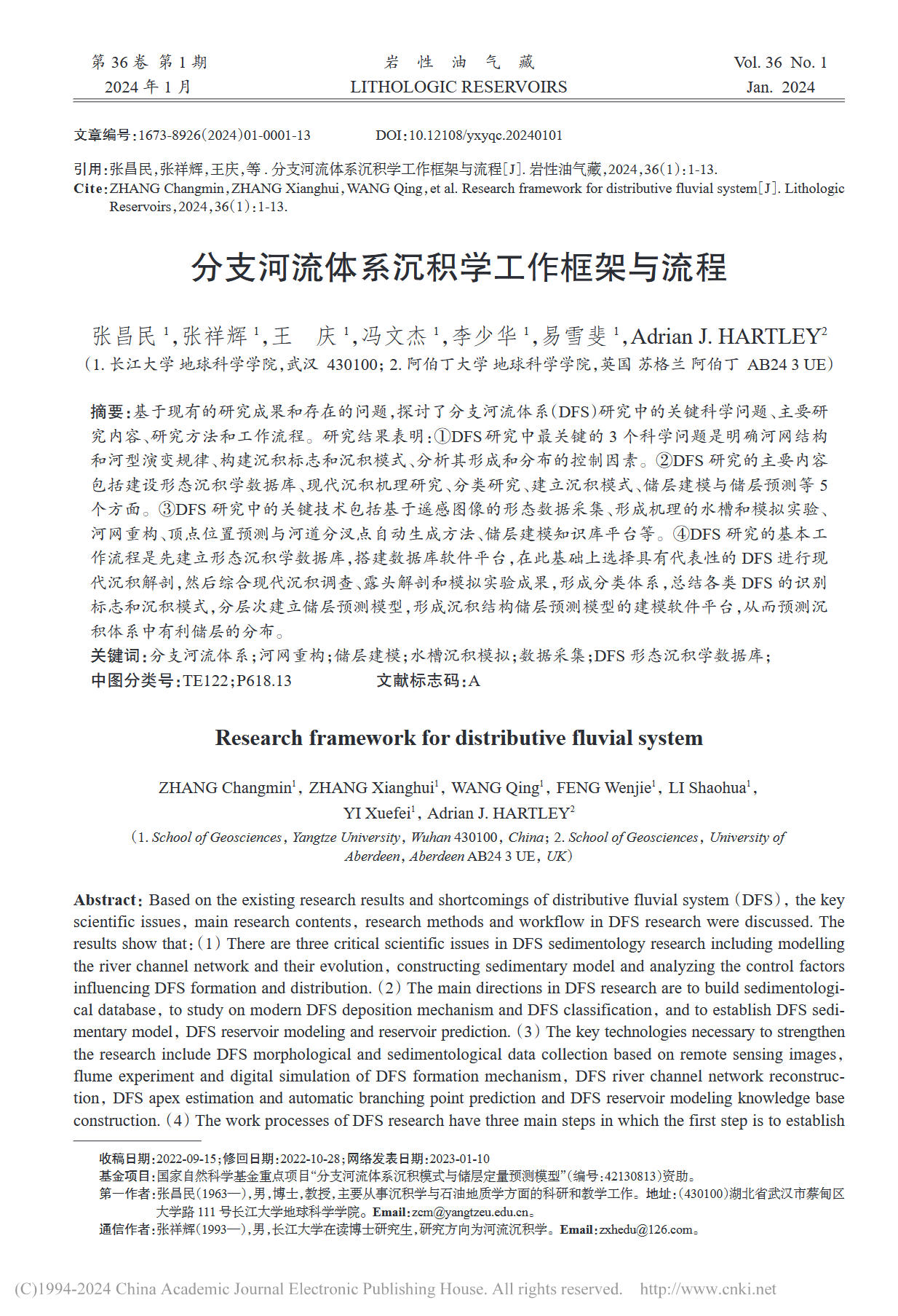 VSport张昌民教授团队在期刊《岩性油气藏》上发表题为“分支河流体系沉积学工作框架与流程”的研究论文。VSport为论文第一署名单位,本项研究得到国家自然科学基金重点项目、湖北省自然科学基金项目共同资助。