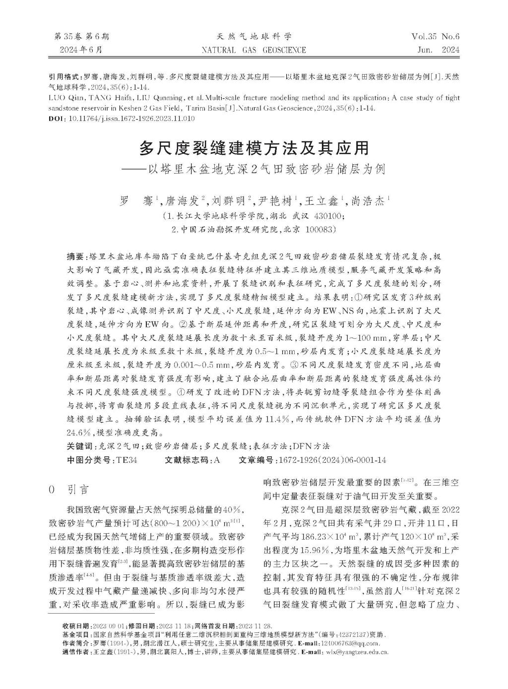 VSport地质学研究生罗骞在《天然气地球科学》上发表了题为“多尺度裂缝建模方法及其应用——以塔里木盆地克深2气田致密砂岩储层为例”的研究论文。