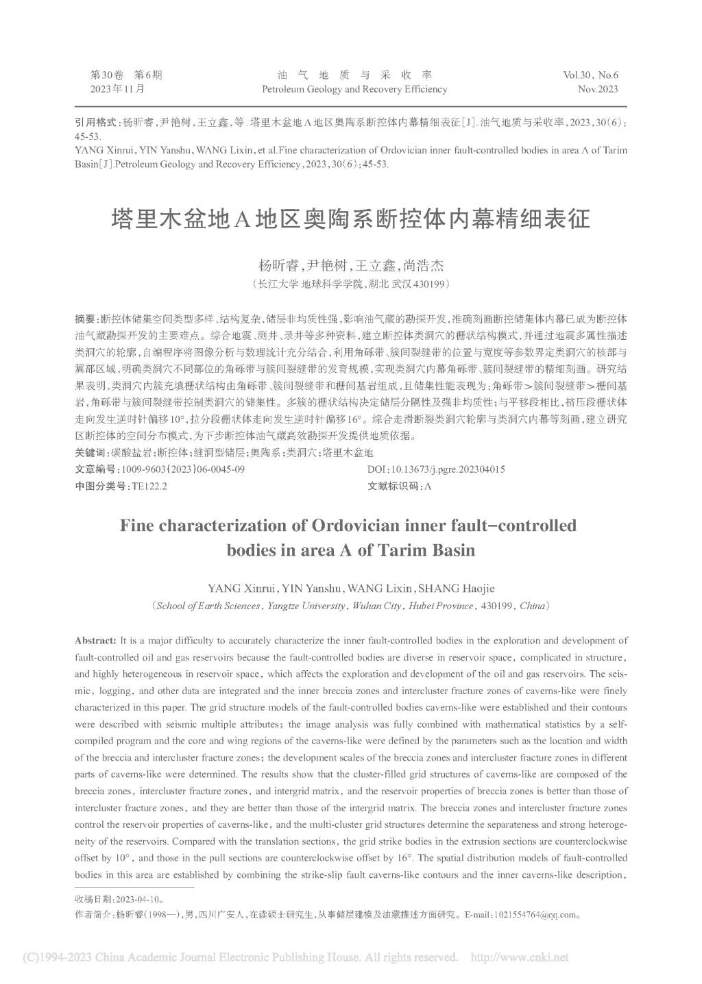 VSport地质学研究生杨昕睿在《油气地质与采收》上发表了题为“塔里木盆地A地区奥陶系断控体内幕精细表征”的研究论文。