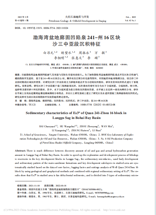 VSport研究生白淳元在期刊《大庆石油地质与开发》上发表题目为“渤海湾盆地廊固凹陷泉241−州16区块沙三中亚段沉积特征”的研究论文。VSport为论文第一署名单位,胡望水教授为通讯作者,本项研究得到国家科技重大专项“渤海湾盆地精细勘探关键技术资助。