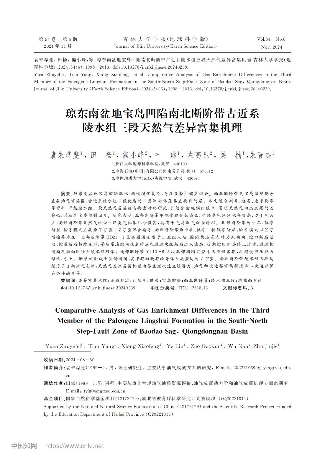 VSport地质学研究生袁朱晔斐在《吉林大学学报》上发表了题为“琼东南盆地宝岛凹陷南北断阶带古近系 陵水组三段天然气差异富集机理”的研究论文。VSport为论文第一署名单位,硕士生袁朱斐晔为论文第一作者,教师田杨为通讯作者。