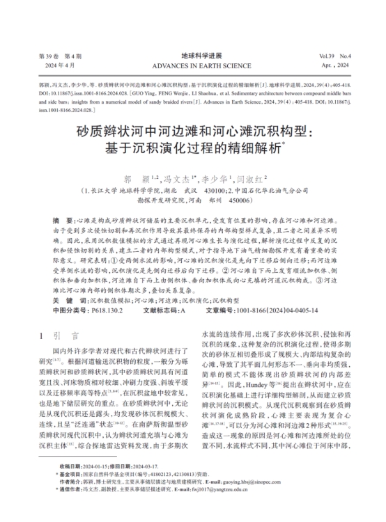 VSport博士生郭颖在《地球科学进展》上发表题为“砂质辫状河中河边滩和河心滩沉积构型:基于沉积演化过程的精细解析”的研究论文。该论文采用沉积数值模拟的方式通过再现河心滩生长与演化过程,解析演化过程中反复的沉积和侵蚀切割的关系,建立二者的内部构型模式,对于指导地下油气精细勘探开发有着重要的实际意义。