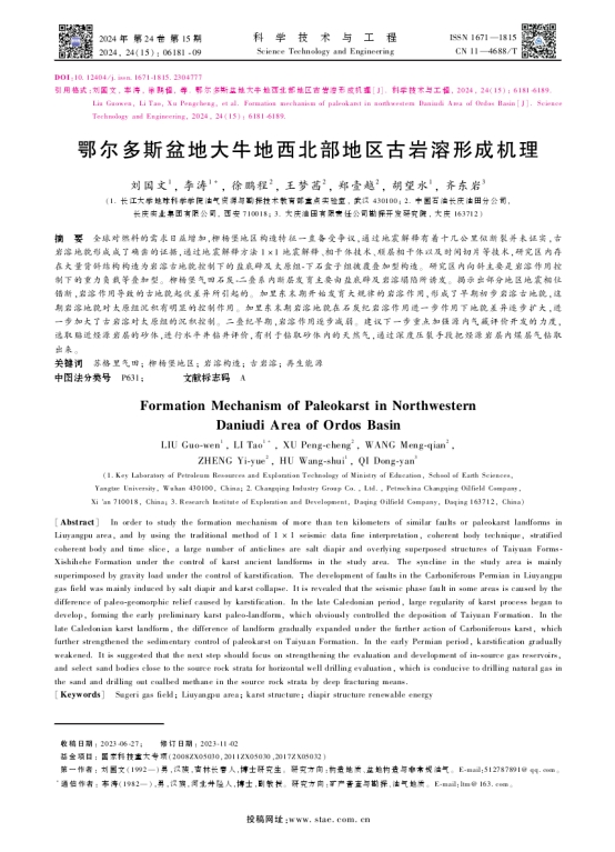 VSport博士生刘国文在《科学技术与工程》上发表题为“鄂尔多斯盆地大牛地西北部地区古岩溶形成机理”的研究论文。VSport为论文第一署名单位,博士生刘国文为论文第一作者,副教授李涛为通讯作者。