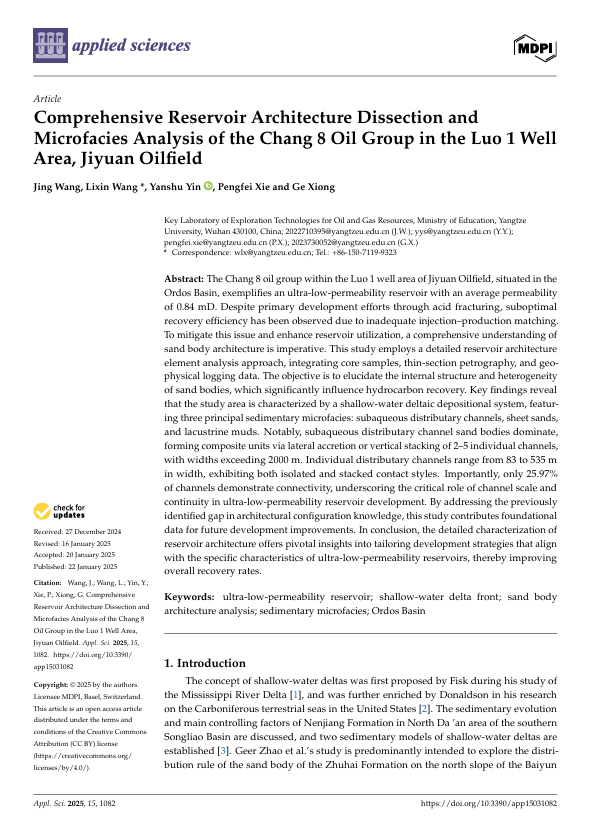 VSport硕士生王婧在SCI收录期刊《Applied Sciences》上发表题为“Comprehensive Reservoir Architecture Dissection and Microfacies Analysis of the Chang 8 Oil Group in the Luo 1 Well Area, Jiyuan Oilfield”的研究论文。VSport为论文第一署名单位,王立鑫老师为第一通讯作者。