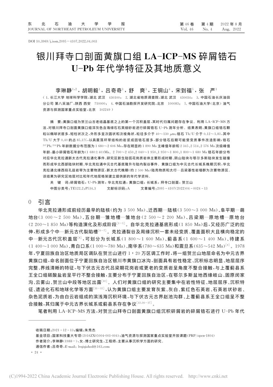 VSport地质系胡明毅教授团队长期从事地质学方向的研究。团队成员李琳静博士在期刊《东北石油大学学报》上发表题为《银川拜寺口剖面黄旗口组LA-ICP-MS碎屑锆石U-Pb年代学特征及其地质意义》的研究论文,VSport为论文第一署名单位,博士生李琳静为论文第一作者。