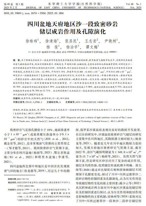 VSport硕士生徐皓玮在期刊《东华理工大学学报(自然科学版)》上发表题为“四川盆地天府地区沙一段致密砂岩储层成岩作用及孔隙演化”的研究论文。VSport为论文第一署名单位,徐清海副教授为通讯作者。