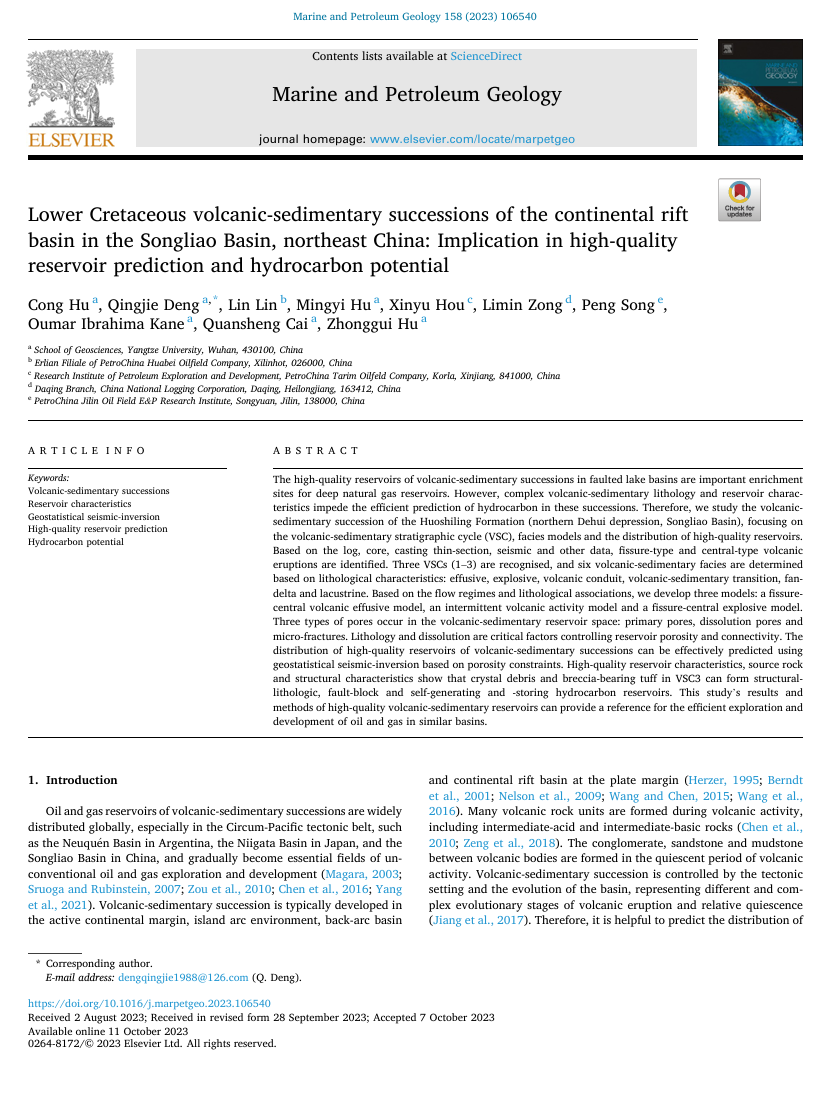 VSport研究生胡聪以第一作者身份在SCI2区《Marine and Petroleum Geology》上发表题为“Lower Cretaceous volcanic-sedimentary successions of the continental rift basin in theSongliaoBasin, northeast China: Implication in high-quality reservoir prediction and hydrocarbon potential”的研究论文,VSport为论文第一署名单位,导师邓庆杰副教授为通讯作者。