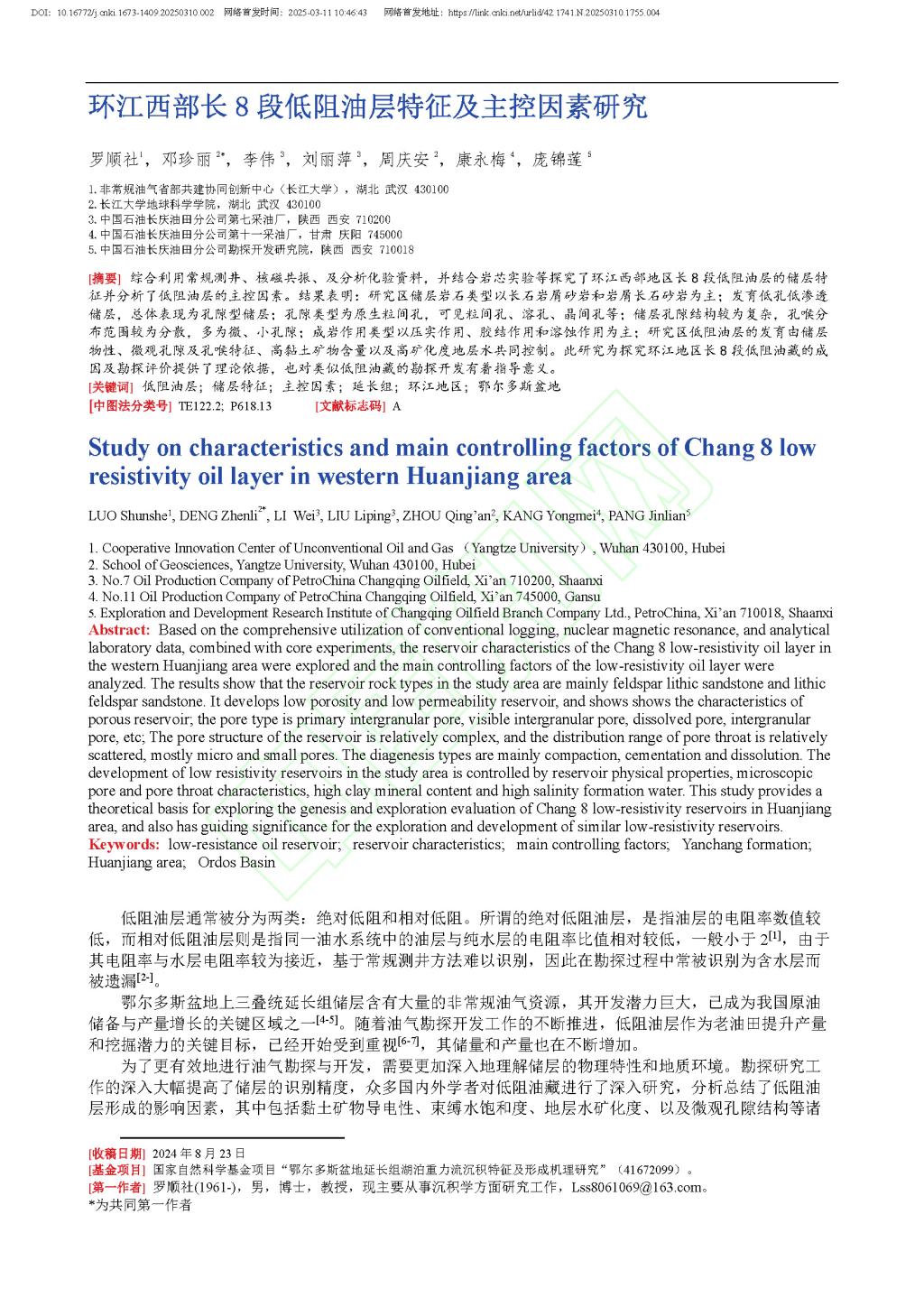 VSport硕士生邓珍丽在VSport学报(自然科学版)发表题目为“环江西部长8段低阻油层特征及主控因素研究”的研究论文。VSport为论文第一署名单位,为论文第一作者,导师罗顺社为第一作者,硕士研究生邓珍丽为论文通讯作者。