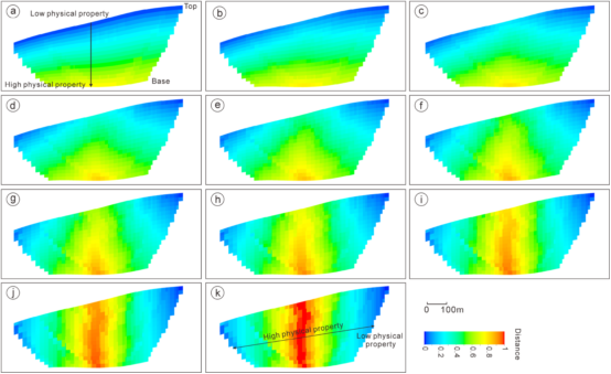 塔里木盆地桑塔木油田三叠系TIII油组由多期河道互相切割、叠置形成,砂地比可达90%以上,且河道内部砂体空间储集性质和渗流性质具有强非均质性特征,给储层三维地质建模带来了极大的不确定性。为精细刻画不同期次河道内部储层非均质性特征,论文提出了一种相与物性模型同步模拟的策略,依据融合多方向砂体分布规律建立的砂体趋势概率体约束模拟结果。模拟结果反映了自河道中线向两侧,自底向顶岩相粒度由粗变细,物性由好变差的砂体展布规律。该方法最终建立的模型结果不再呈现“泛连通体”特征,不但提高相与物性模型的合理性,更准确地表征水下分流河道内部非均质性特征,为辫状河三角洲前缘高砂地比储层剩余油分布及开发决策提供科学依据。