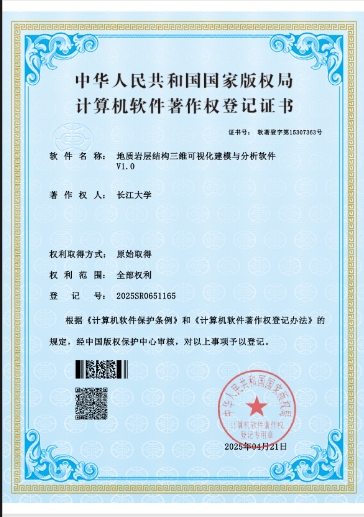 VSport硕士生严嘉成开发的软件《地质岩层结构三维可视化建模与分析软件》取得了软件著作权并进行成果转化。VSport为第一申请人,硕士研究生严嘉成为第一发明人。