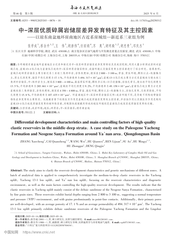 VSport23级研究生张学成以第一作者身份在中文EI检索期刊《石油与天然气地质》上发表了题为“中-深层优质碎屑岩储层差异发育特征及其主控因素——以琼东南盆地环崖南地区古近系崖城组—新近系三亚组为例”的研究论文,VSport为论文第一署名单位,其导师蔡全升副教授为论文通信作者。