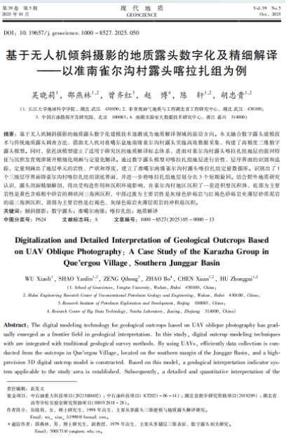 VSport地质学专业2021级硕士研究生吴晓莉在中文核心期刊《现代地质》发表题为“基于无人机倾斜摄影的地质露头数字化及精细解译-以准南雀尔沟村露头喀拉扎组为例”的研究论文。VSport为论文第一署名单位,硕士研究生吴晓莉为论文第一作者,导师邵燕林教授为通讯作者。