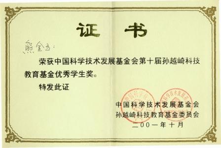员工获得孙越崎科技教育基金会"优秀员工奖" 证书
